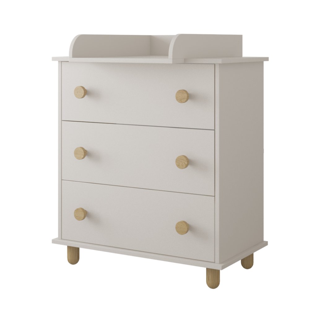 Kompaktní rozměry, zaoblené hrany a čtyři pevné bukové nožky zajišťují bezpečné používání i v pokojíčku nejmenších dětí. Komoda je navržená tak, aby splnila nároky moderní rodiny – stabilní, snadno udržovatelná a praktická.