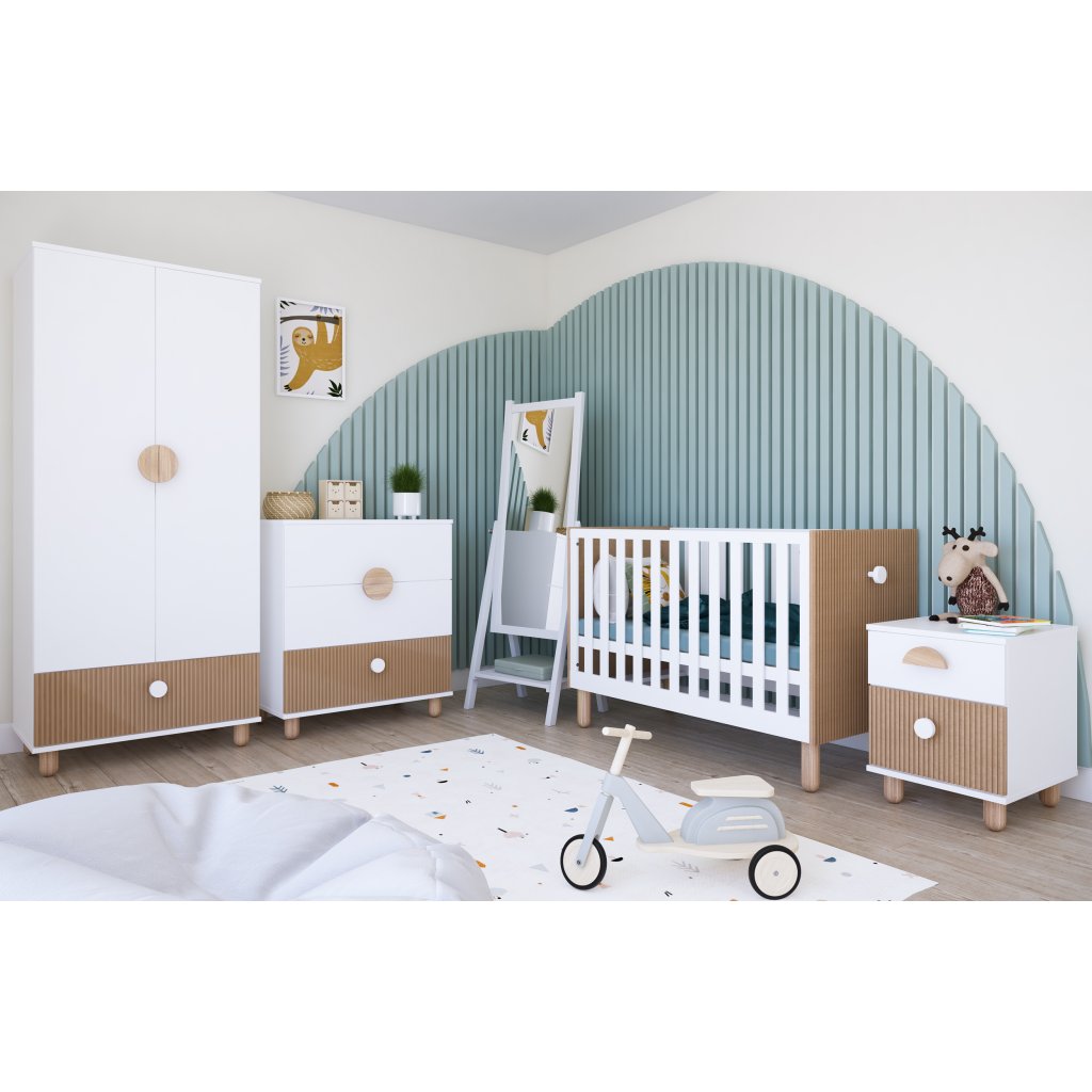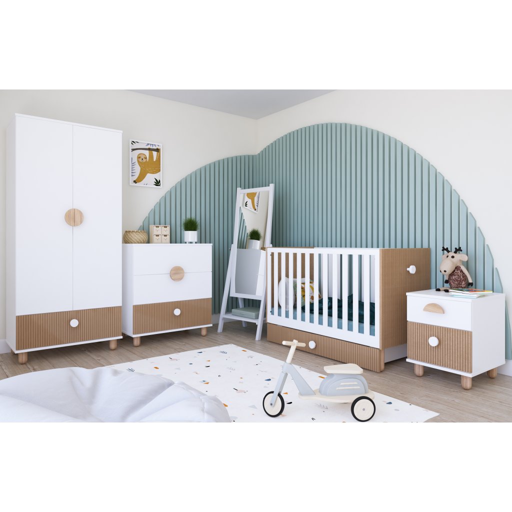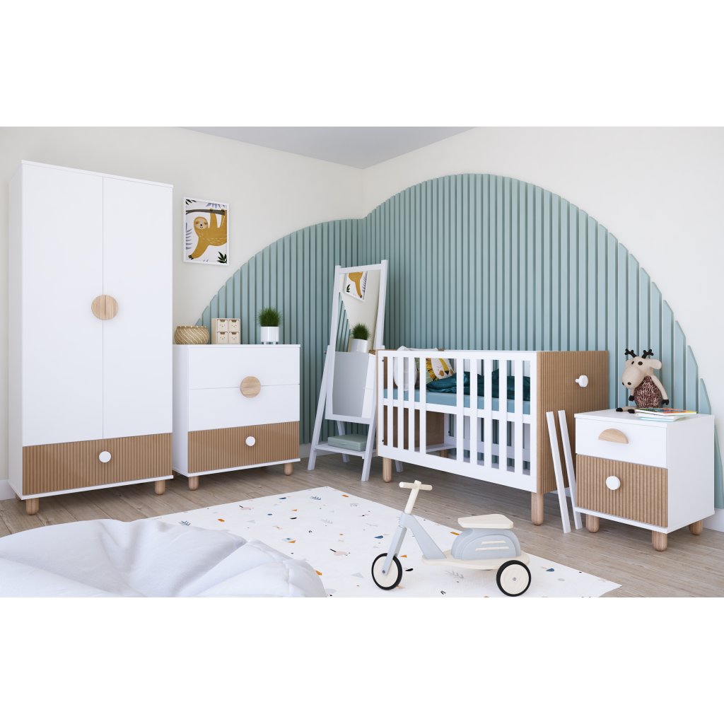 Nadčasový design inspirovaný skandinávským minimalismem v kombinaci s masivními bukovými nožkami a kulatými úchytkami vytváří vzdušný a harmonický prostor, který poroste s vaším dítětem.