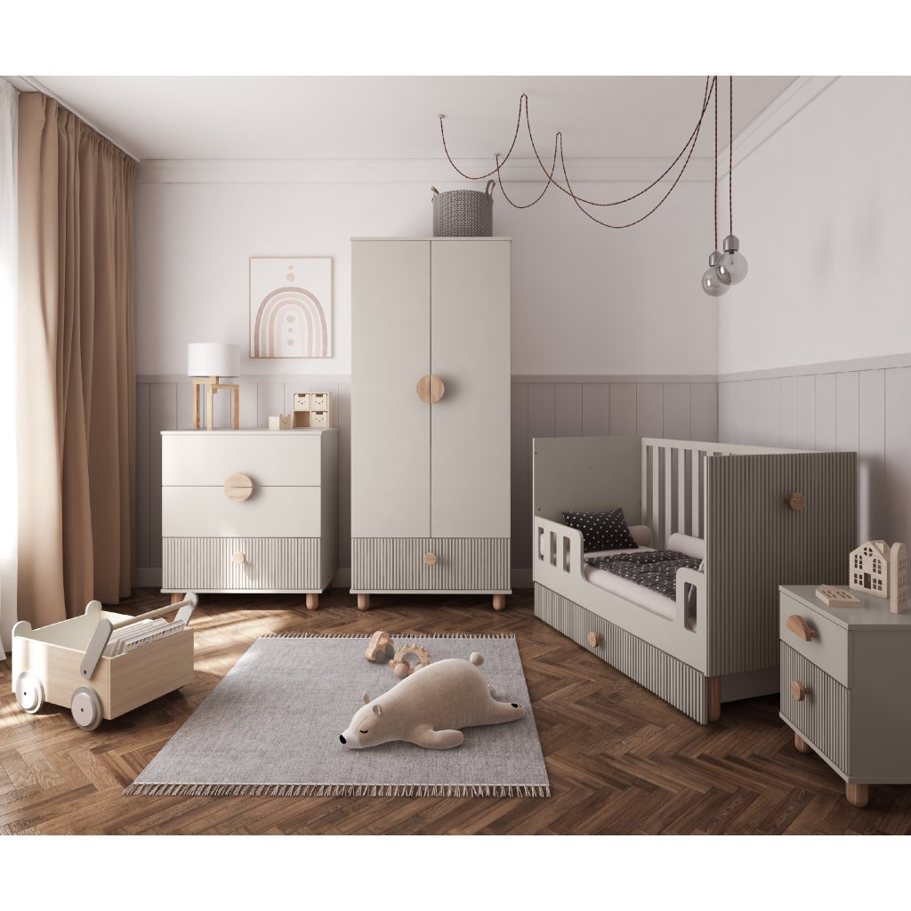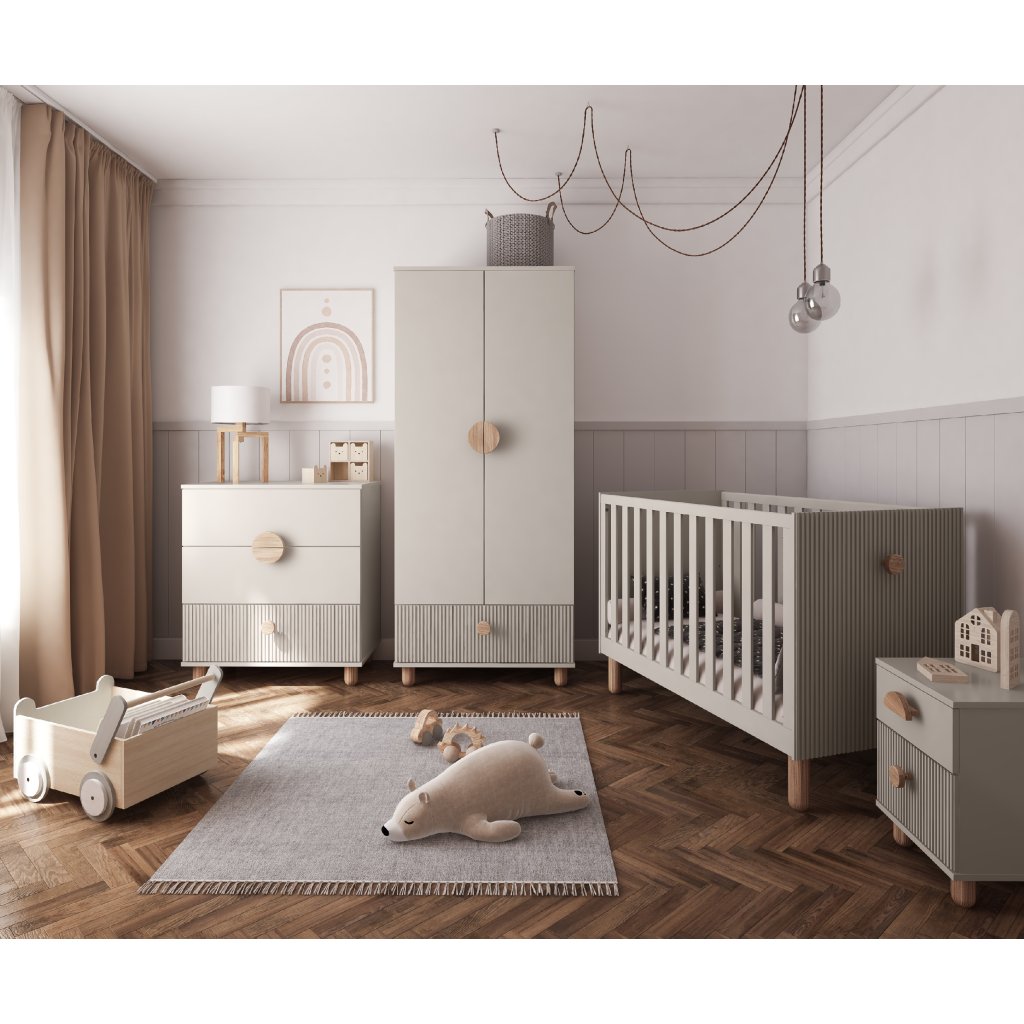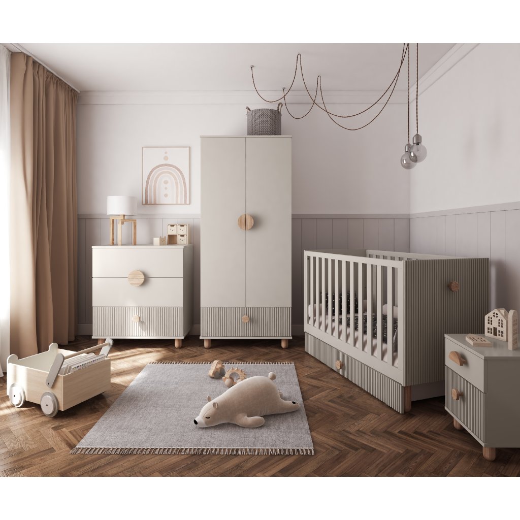 Nadčasový design inspirovaný skandinávským minimalismem v kombinaci s masivními bukovými nožkami a kulatými úchytkami vytváří vzdušný a harmonický prostor, který poroste s vaším dítětem.