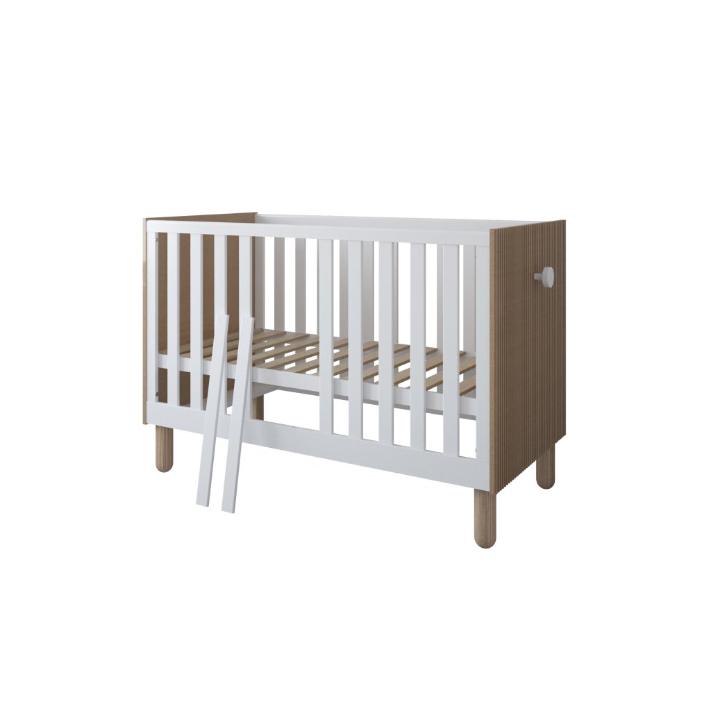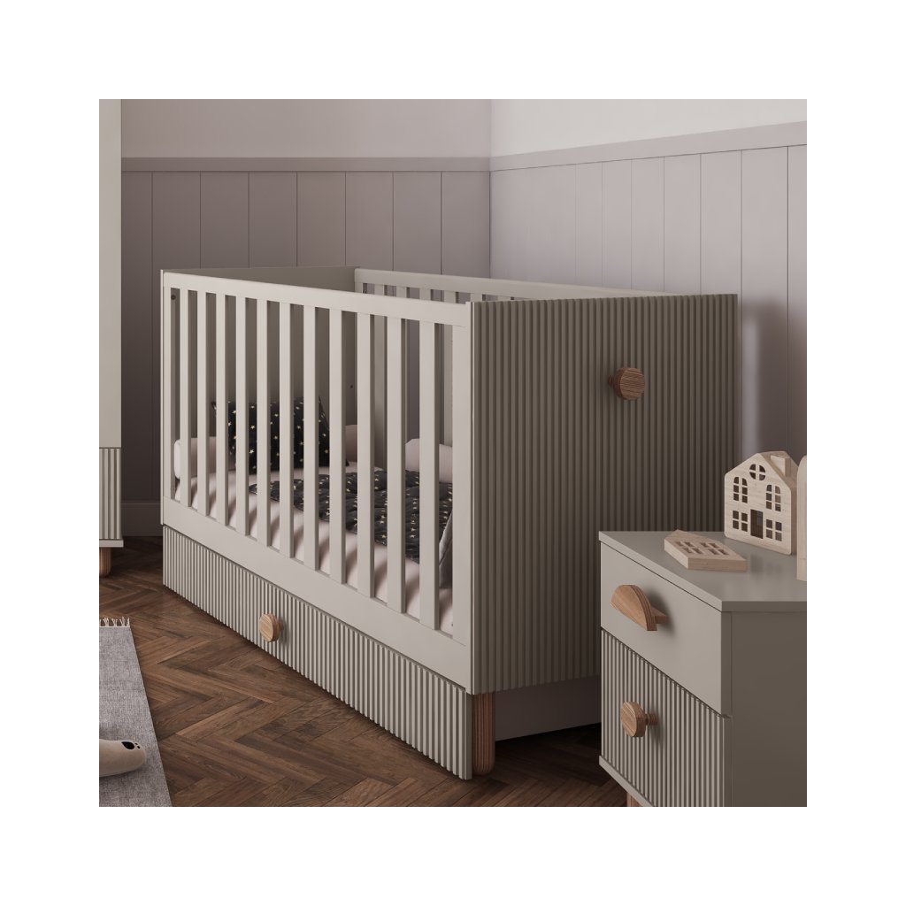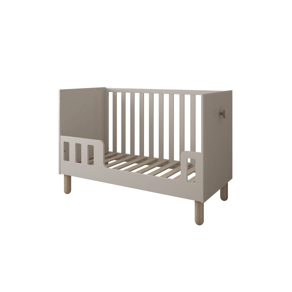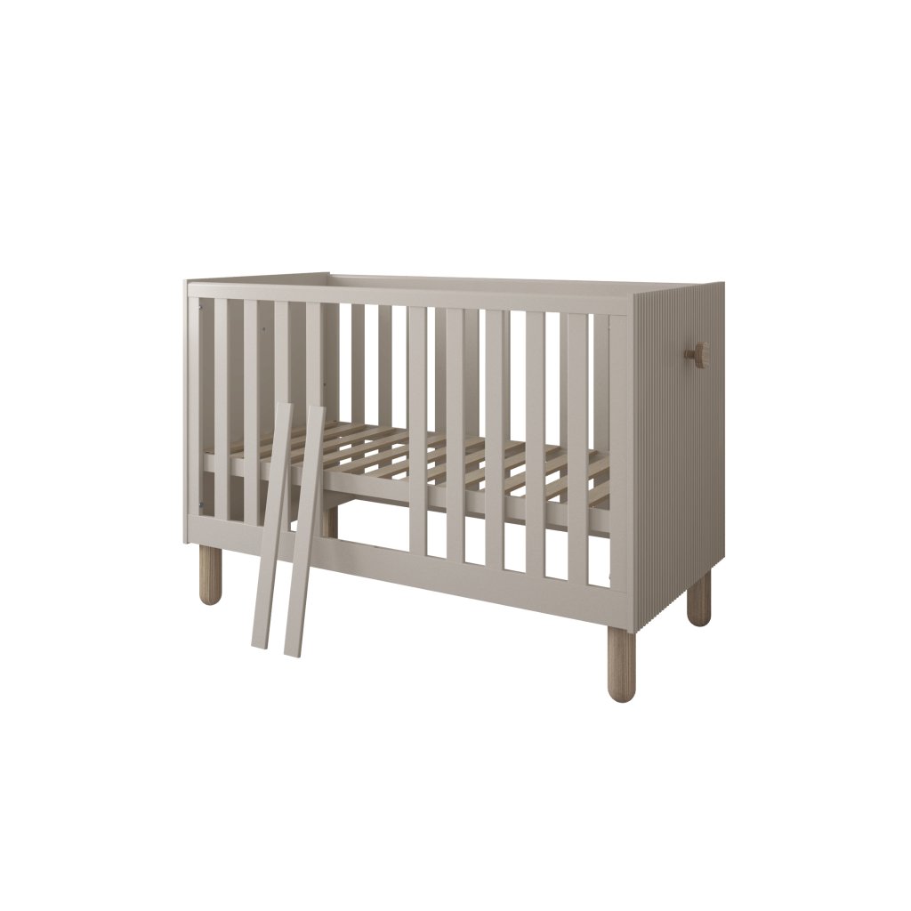 Obě varianty jsou doplněny o masivní bukové nožky a úchytky, které dodávají postýlce přirozený vzhled a estetickou lehkost.