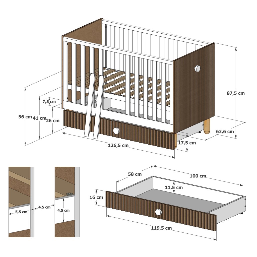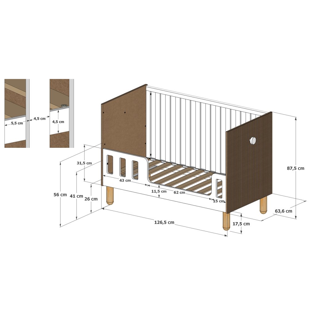 Dětská postýlka LOFT nabízí praktické funkce pro každodenní péči a přizpůsobení podle vývoje dítěte: