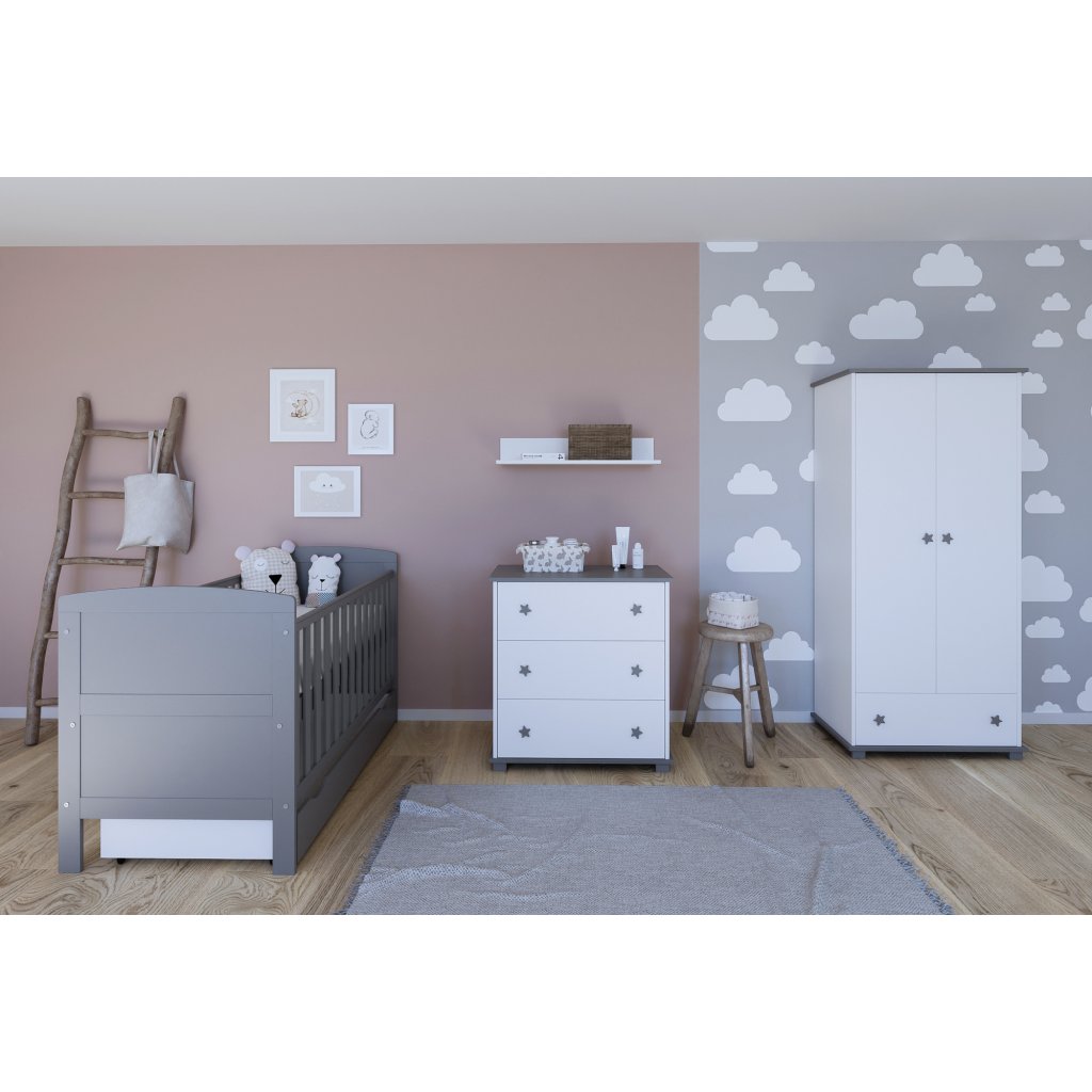 Postýlka PHILIP je k dispozici ve dvou elegantních variantách: bílá a šedá, které krásně doplní každý dětský pokoj.