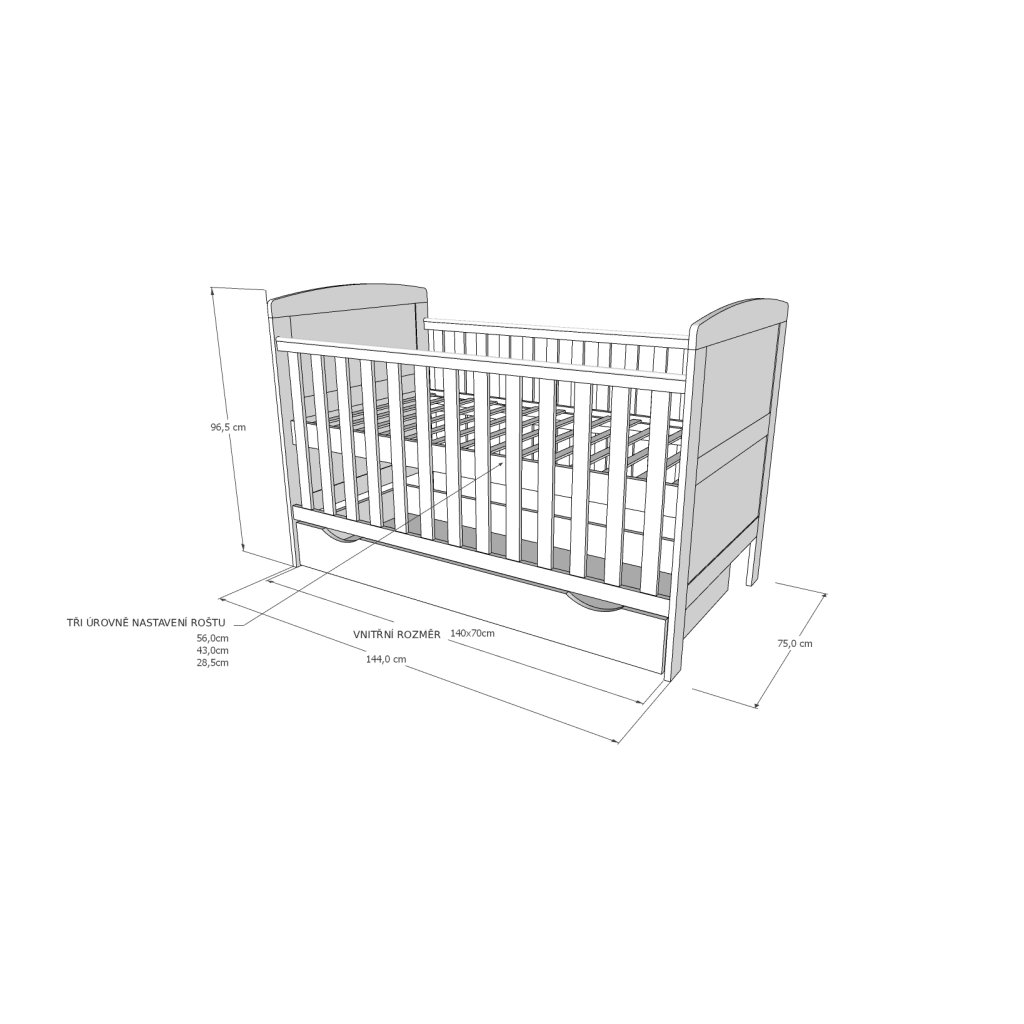 Úložný prostor není součástí balení, ale výrazně zvyšuje praktičnost postýlky.