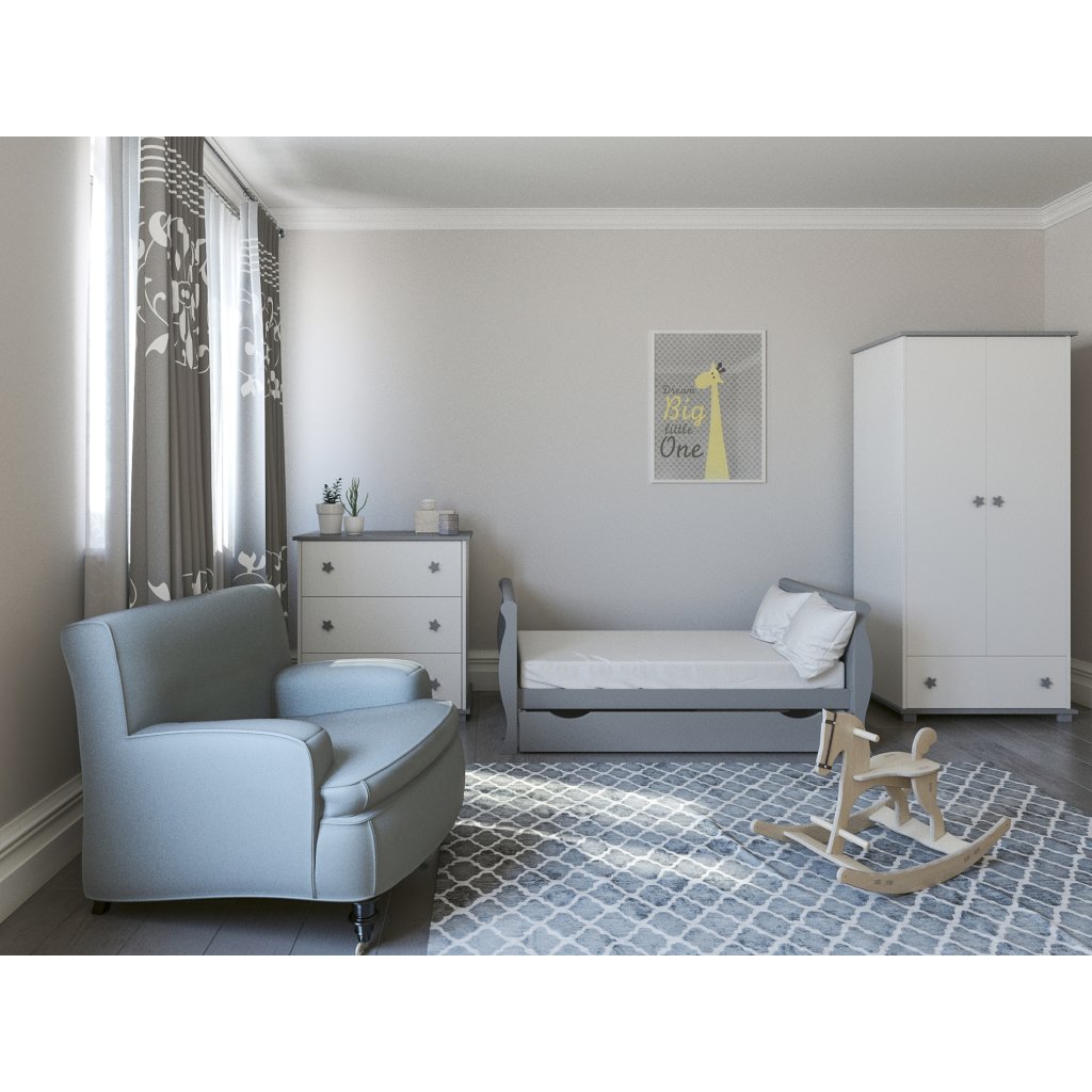 Díky svému nadčasovému designu se hodí do každého dětského pokoje a díky variabilní funkci 3v1 roste spolu s vaším dítětem.