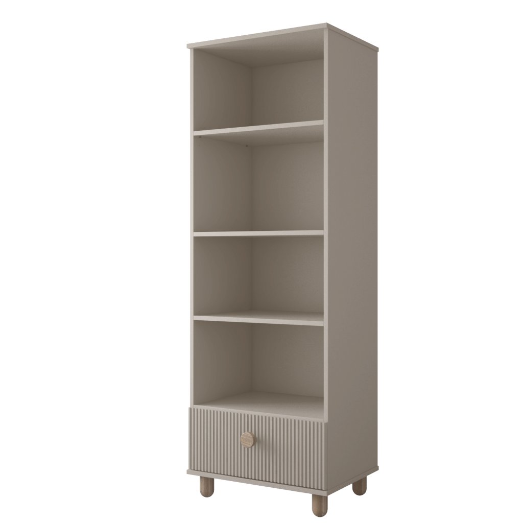 Dětský regál LOFT nabízí tři prostorné police, které poskytují dostatek místa pro knihy, hračky nebo dekorace. Ve spodní části se nachází praktická výsuvná zásuvka s tichým a plným výsuvem, která zajistí snadný přístup a pořádek v úložném prostoru. Díky kombinaci otevřených polic a zásuvky se regál stává univerzálním řešením, které podpoří organizaci dětského pokoje a naučí děti udržovat si vlastní pořádek.