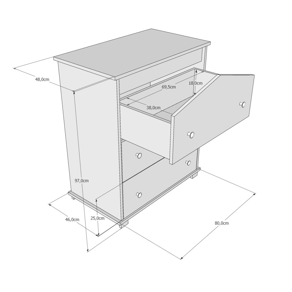 - Komoda se třemi zásuvkami – ideální na prádlo, hračky nebo výtvarné potřeby