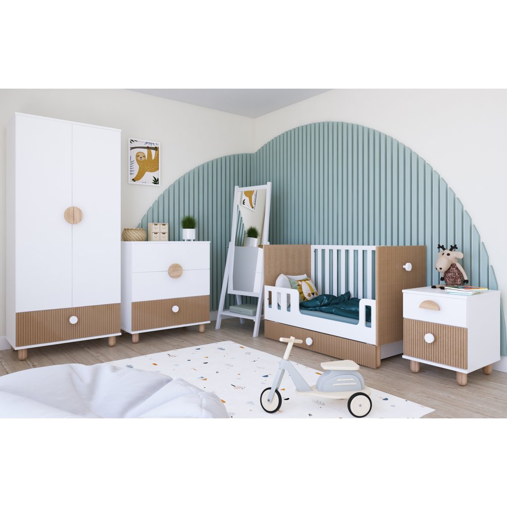 Sestava poskytuje dostatek úložného prostoru a díky jednotnému designu vytvoří útulný a sladěný interiér pro každé dítě.
