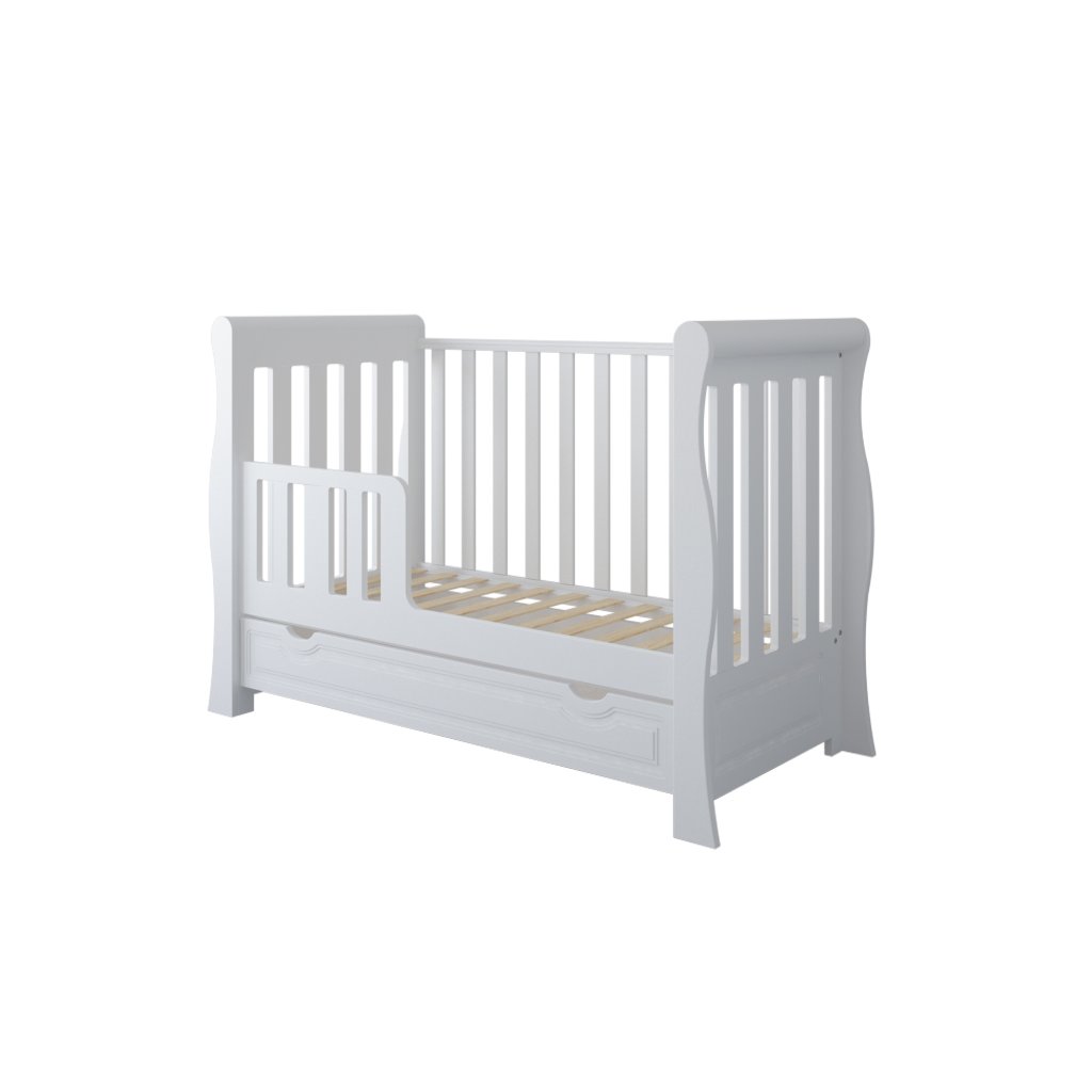 Dětská postýlka je vyrobena z kvalitní nábytkové desky a nabízí řadu chytrých funkcí pro pohodlí vašeho miminka:
