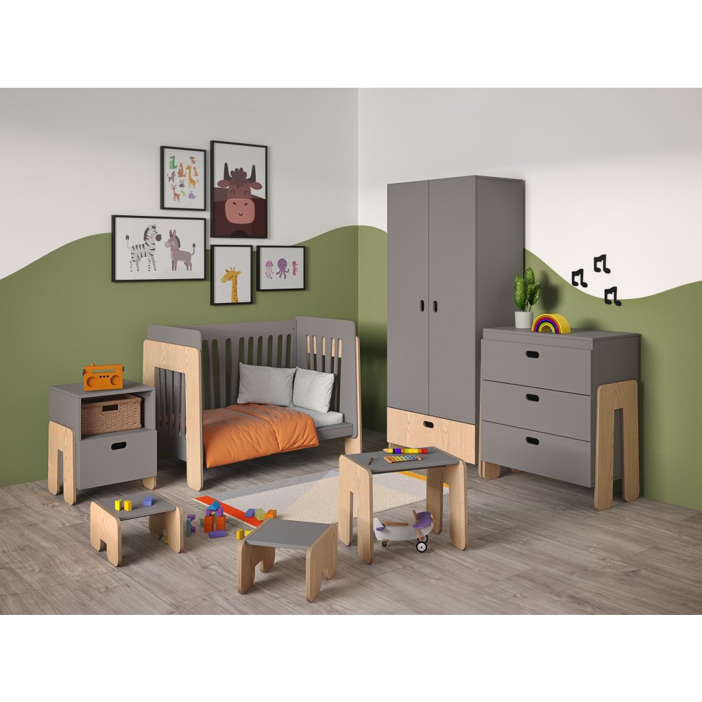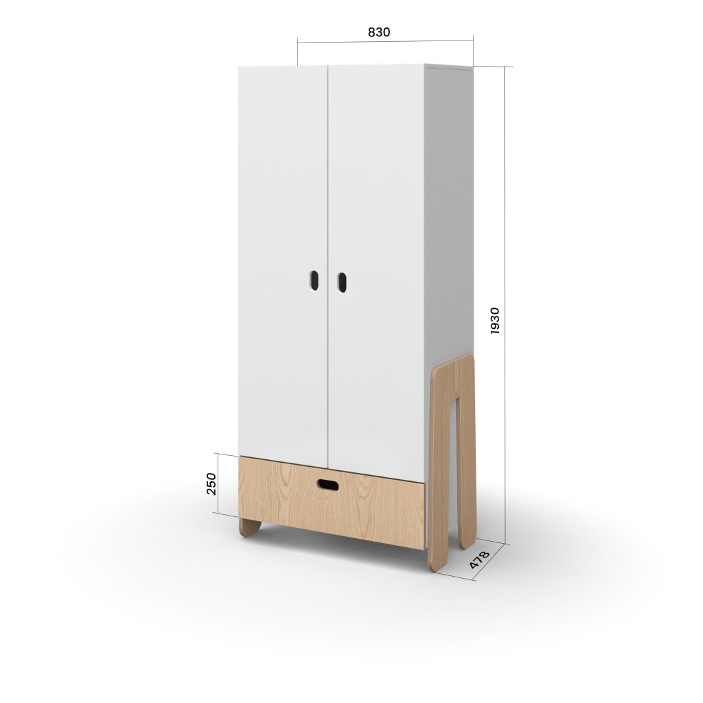 Skříň stojí na pevných čtyřech nožkách, které jí zajišťují stabilitu a zároveň umožňují snadnou údržbu i na obtížných místech. Tento praktický a stylový kousek je skvělým doplňkem do každého dětského pokoje.