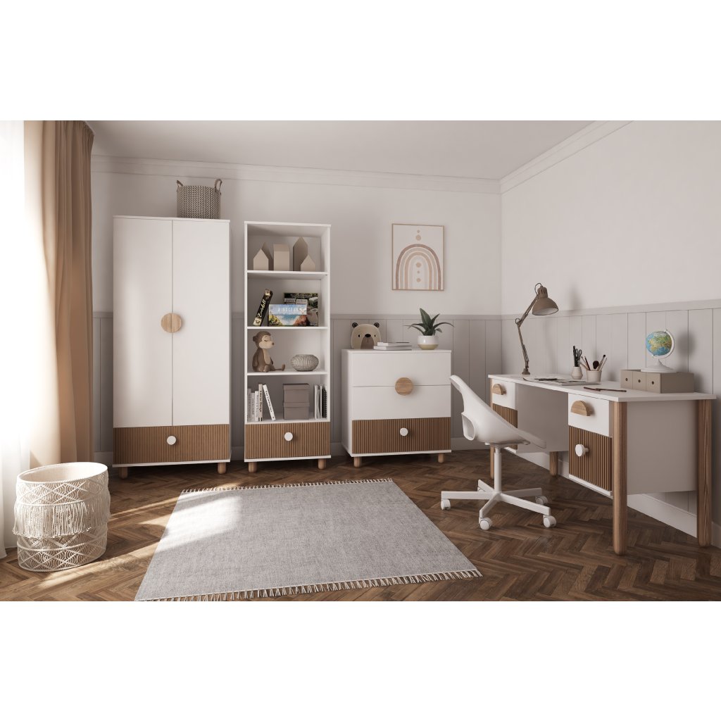 Sestava poskytuje dostatek úložného prostoru a díky jednotnému designu vytvoří útulný a sladěný interiér pro každé dítě.
