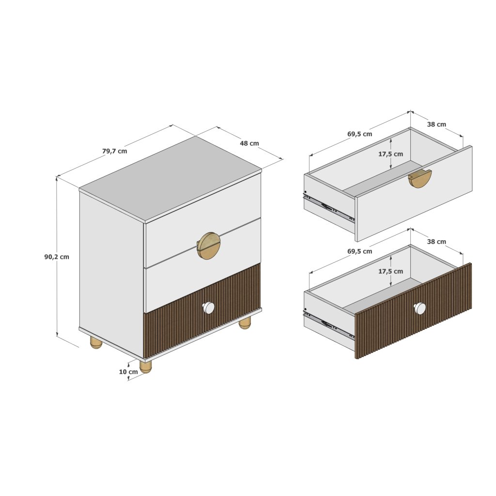 - Komoda se třemi zásuvkami – ideální na prádlo, hračky a doplňky
