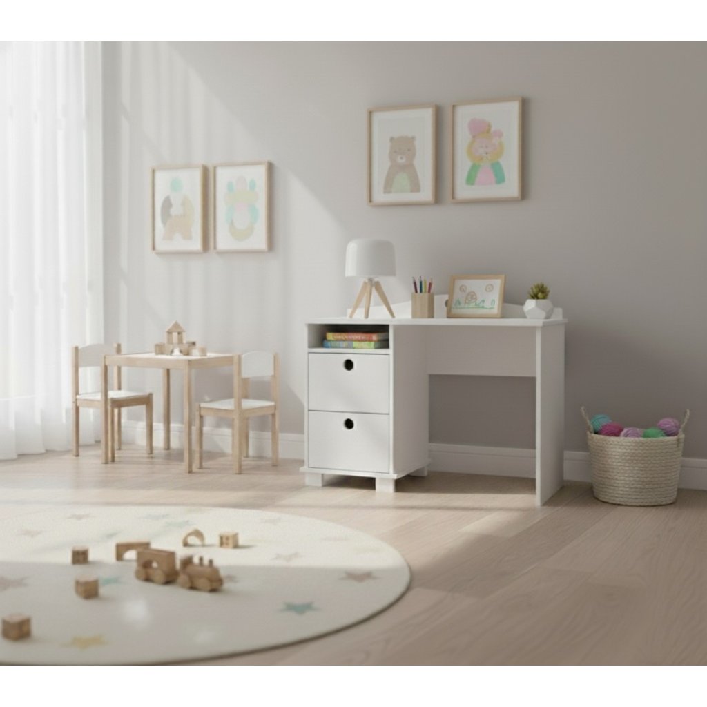 Dětský stůl KOLEČKA je ideálním doplňkem každého dětského pokoje. Vyrobený z kvalitní nábytkové desky o síle 18 mm nabízí vysokou odolnost, stabilitu a snadnou údržbu. Stůl byl navržen s důrazem na funkčnost, bezpečnost a hravý design, který potěší malé umělce, školáky i rodiče.